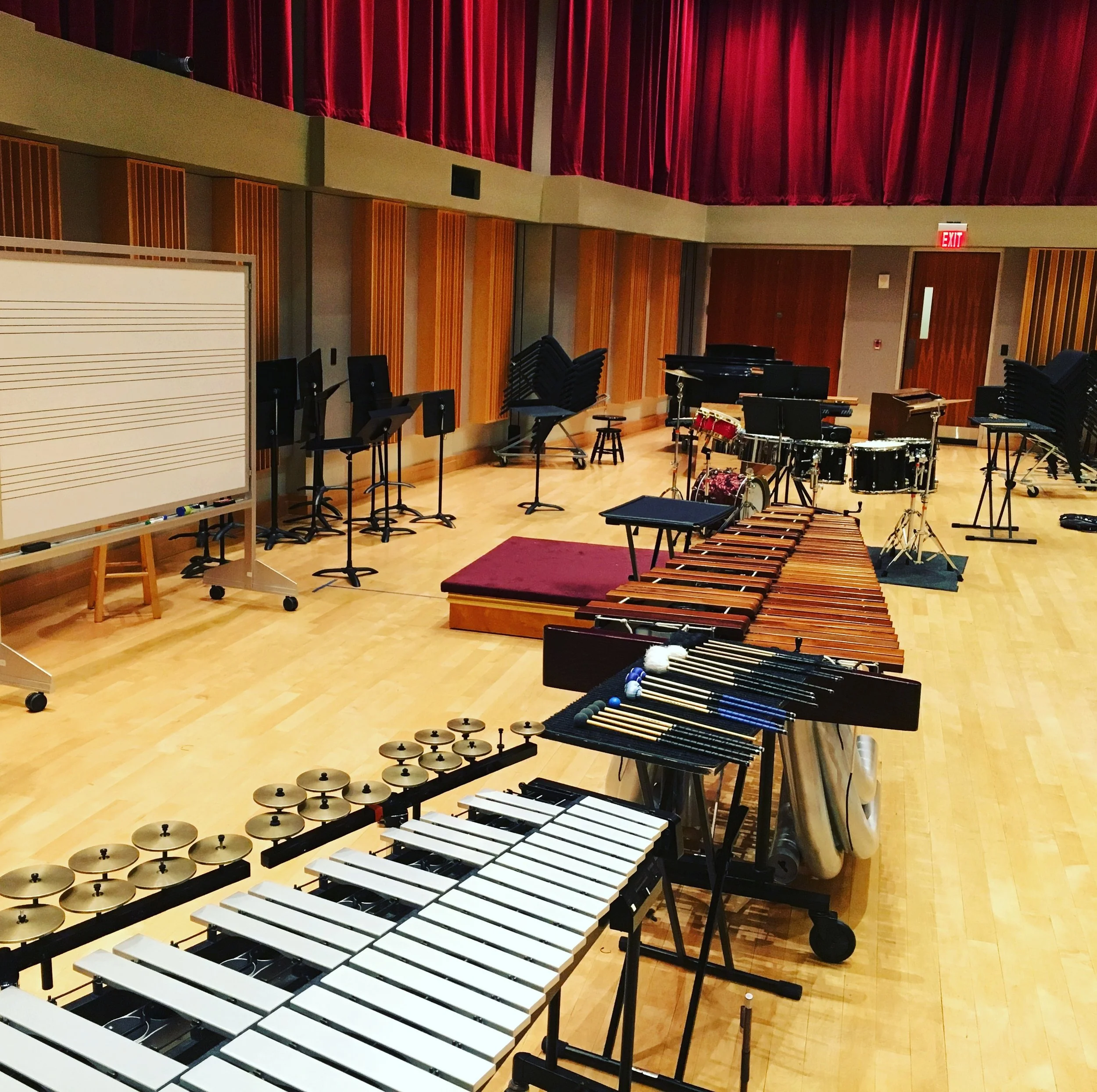 If there are multiple setups on stage, practice walking from setup to setup while a recording plays. For example, the Higdon Concerto has 4 stations, and the final walk from stage right to stage left nearly requires a jog to arrive in time. Plan for this!